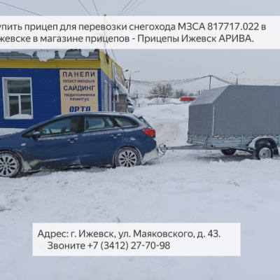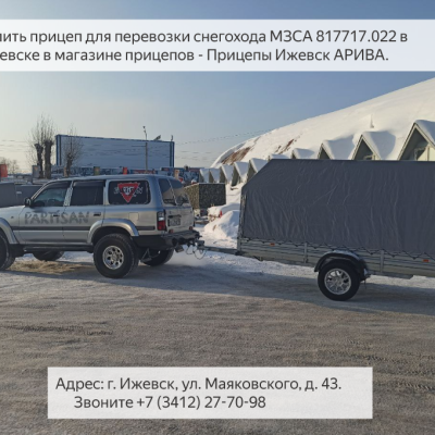 Для любителей активного отдыха компания АРИВА предлагает несколько видов прицепов для перевозки снегохода. В наличии имеются: одноосные и двухосные прицепы, с тентом, пластиковой крышкой или фургон, с функцией самосвала или с трапом для заезда техники, на стандартных колесах или с усиленными колесами R16, с оцинкованными или алюминиевыми бортами. Каждому клиенту мы предлагаем следующие модели прицепов, и вам рекомендуем обязательно их рассмотреть: МЗСА 817717.022, 817717.025, МЗСА 817732.022, МЗСА 817774.003, МЗСА 817784.003, а также модели с алюминиевыми бортами: МЗСА 817717.032 (034), МЗСА 817732.032 (034). Приезжайте в наш класнный магазин прицепов Ижевск, Маяковского, 43. Работаем ежденевно с 8 до 17. Телефон 8 (3412) 27-70-98.